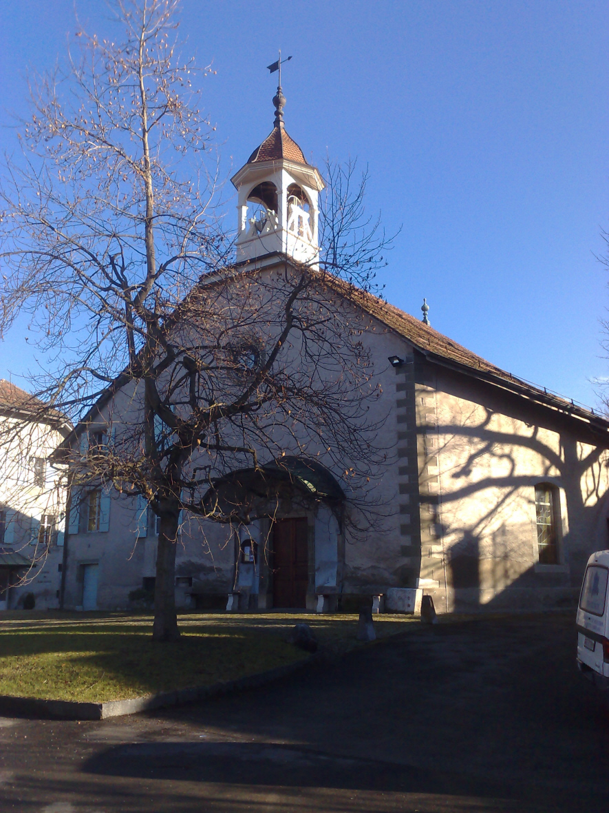 L'ancienne église médiévale St-Georges fut reconstruite et agrandie en 1772 : tout en réutilisant une partie des murs anciens, on renouvela le plan du bâtiment. A l'origine longitudinal, celui-ci prit la forme d'un large hémicycle, auquel on adossa le presbytère. Deux fonctions différentes furent ainsi regroupées sous un même toit.
