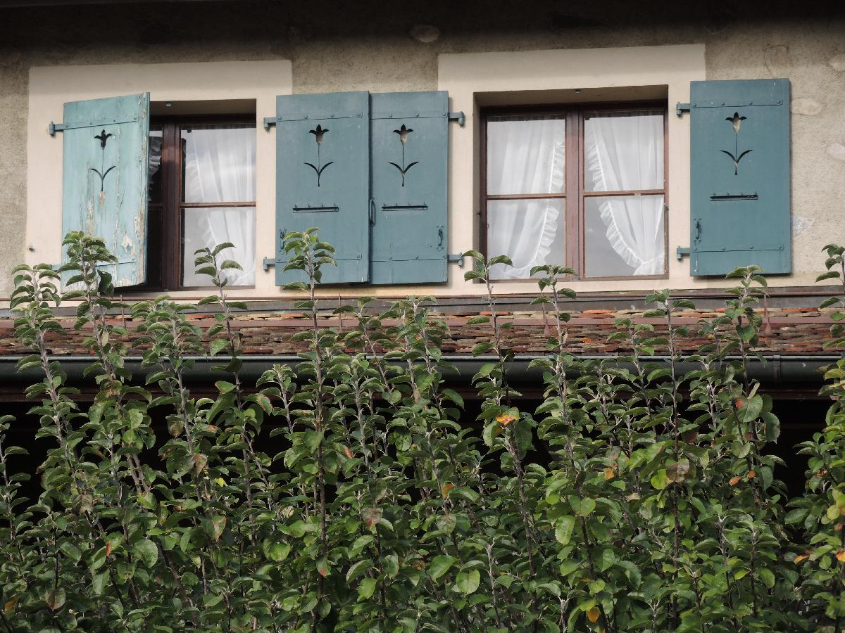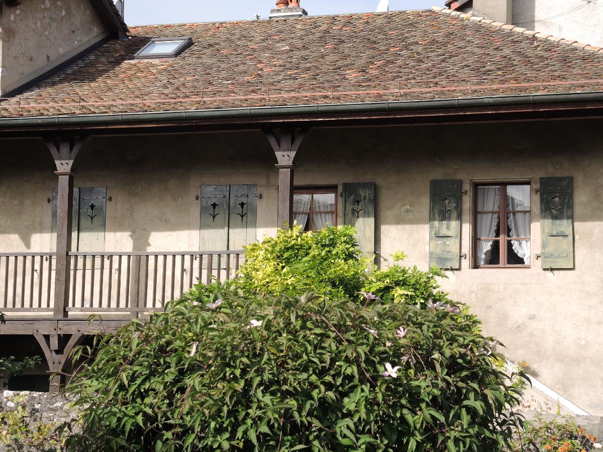 La maison est contiguë au nord-ouest à la ruelle des Galeries 16, au sud-ouest à la ruelle des Galeries 14, et au sud à la ruelle des Galeries 12. De plan rectangulaire, elle s’élève sur un étage sur rez-de-chaussée, coiffé d’une toiture à un pan principal avec croupe côté rue du Nord. La façade principale, à l’est, comporte un escalier extérieur menant au 1er étage et s’y prolongeant en une galerie couverte par l’avant-toit (no 379?). Les deux façades présentent des pierres apparentes, émergeant çà et là du crépi. Les façades est et nord se distinguent par leur avant-toit saillant soutenu par des colonnettes en bois ouvragé (est) et des consoles en bois ouvragé (nord), la diversité de leurs baies, qui sont rectangulaires d’un côté et rectangulaires et en plein cintre de l’autre, et par les contrevents en bois peints en vert comprenant un motif de fleur découpé ressemblant à une tulipe stylisée. Les fenêtres, dont les menuiseries sont en bois, sont à petits carreaux. Côté jardin, la façade est, qui s’étire en longueur, est dotée d’une galerie en bois qui longe une partie du 1er étage de la façade, formant ainsi un long porche au rez-de-chaussée. La galerie, qui est reliée à l’avant-toit par des colonnettes en bois, est soutenue par d’autres colonnettes du même type. Dans leur partie supérieure, chaque colonnette se divise en trois branches, dont les deux extérieures sont courbées. L’effet décoratif ainsi obtenu complémente l’effet ornemental rendu par les motifs floraux des contrevents. L’ensemble est surmonté par un toit à trois pans aux égouts légèrement retroussés, qui contribue à l’harmonie décorative générale.