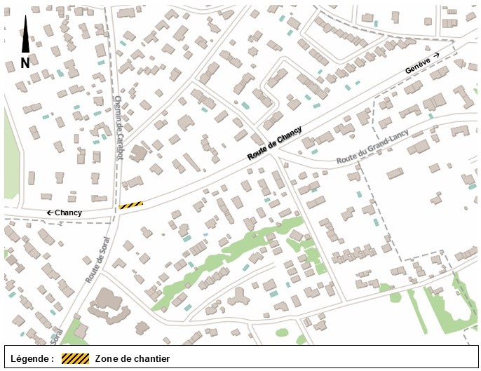 - Réduction des voies de circulation, avec neutralisation de la pré-sélection « tout droit » en direction de Chancy.