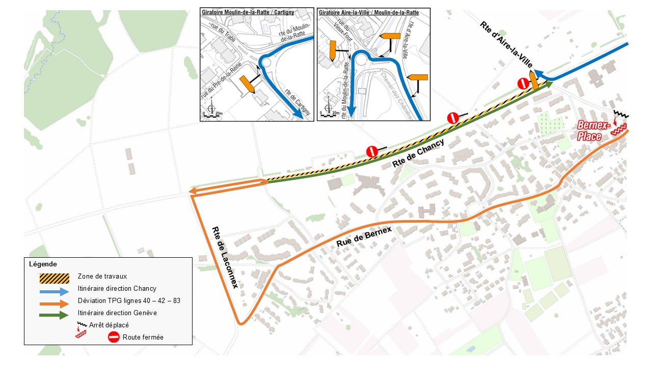 • Déviation pour les lignes de bus 40-42-83, en direction de Chancy