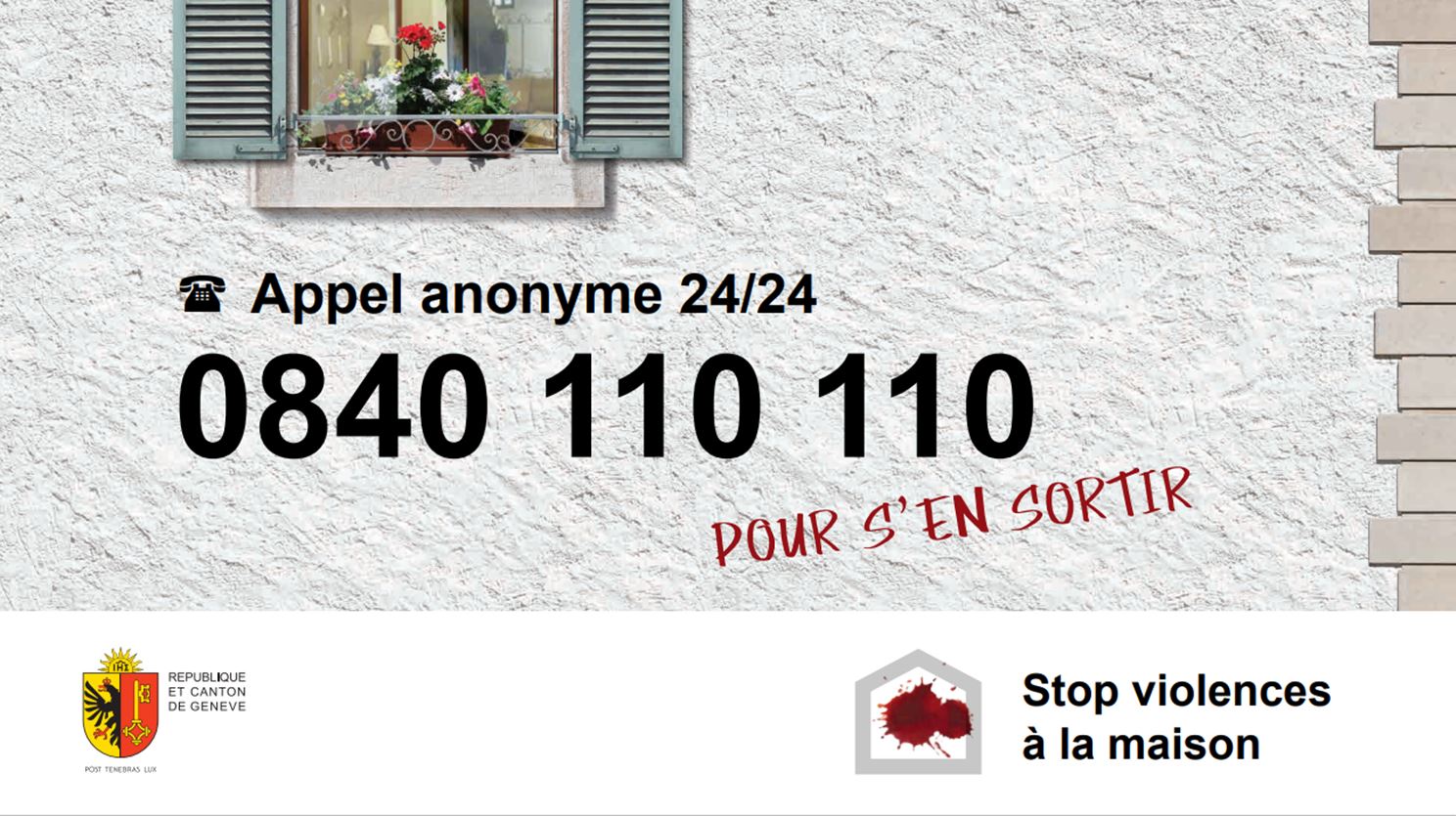 Elle fait également connaître la ligne téléphonique violences domestiques 0840 110 110, qui offre une écoute anonyme et une orientation aux personnes concernées.