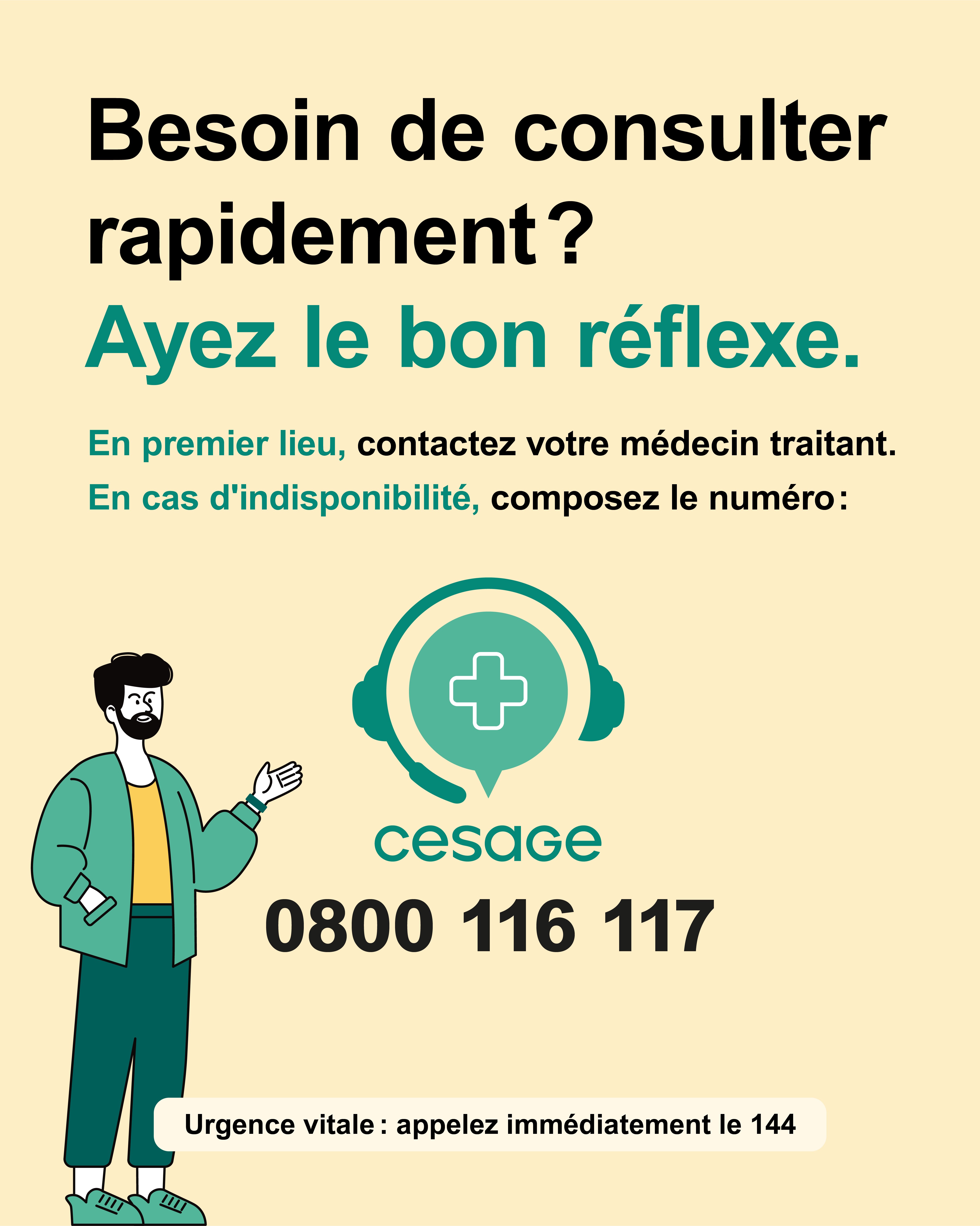 Urgence vitale - Appelez immédiatement le 144 |