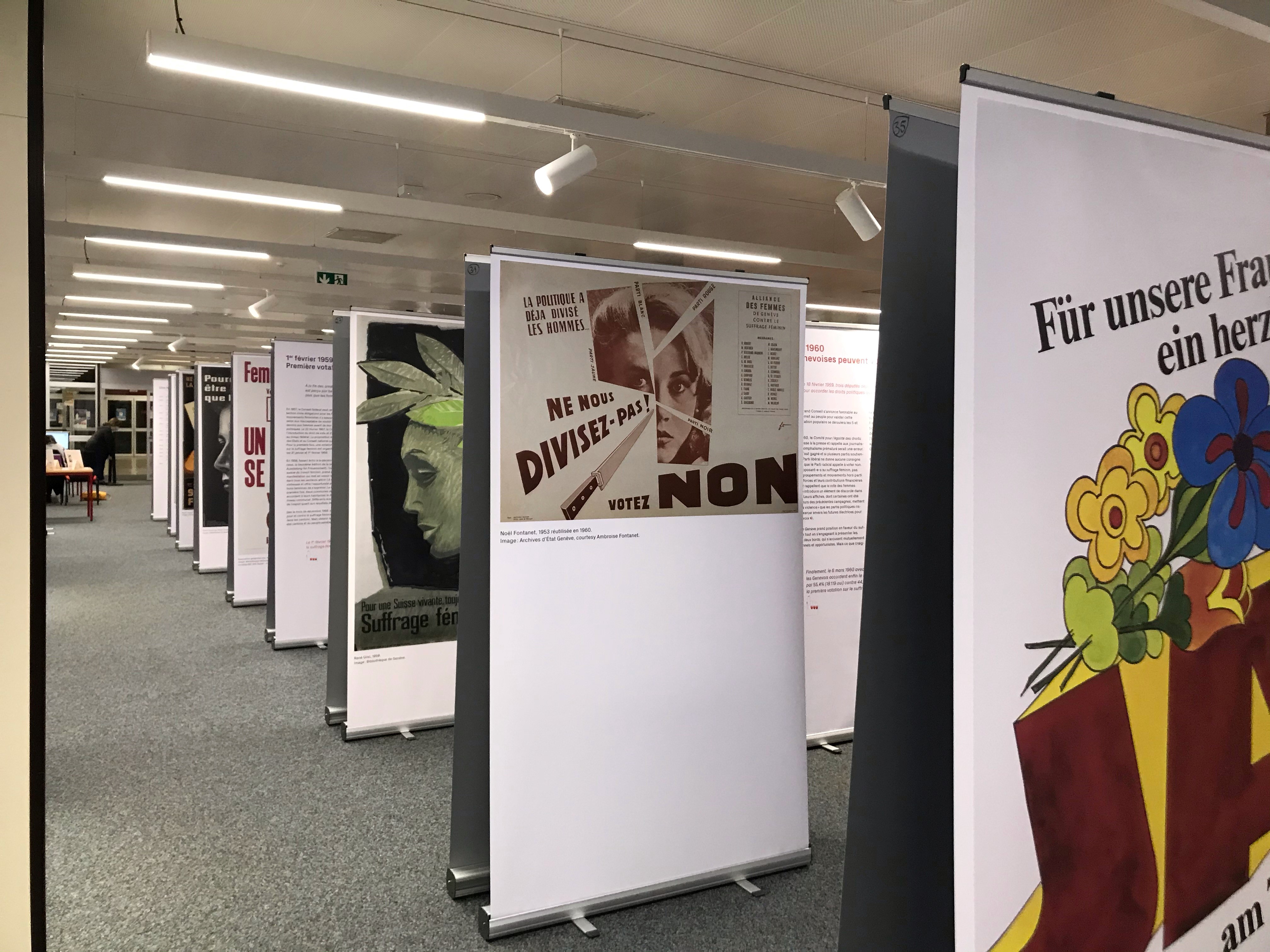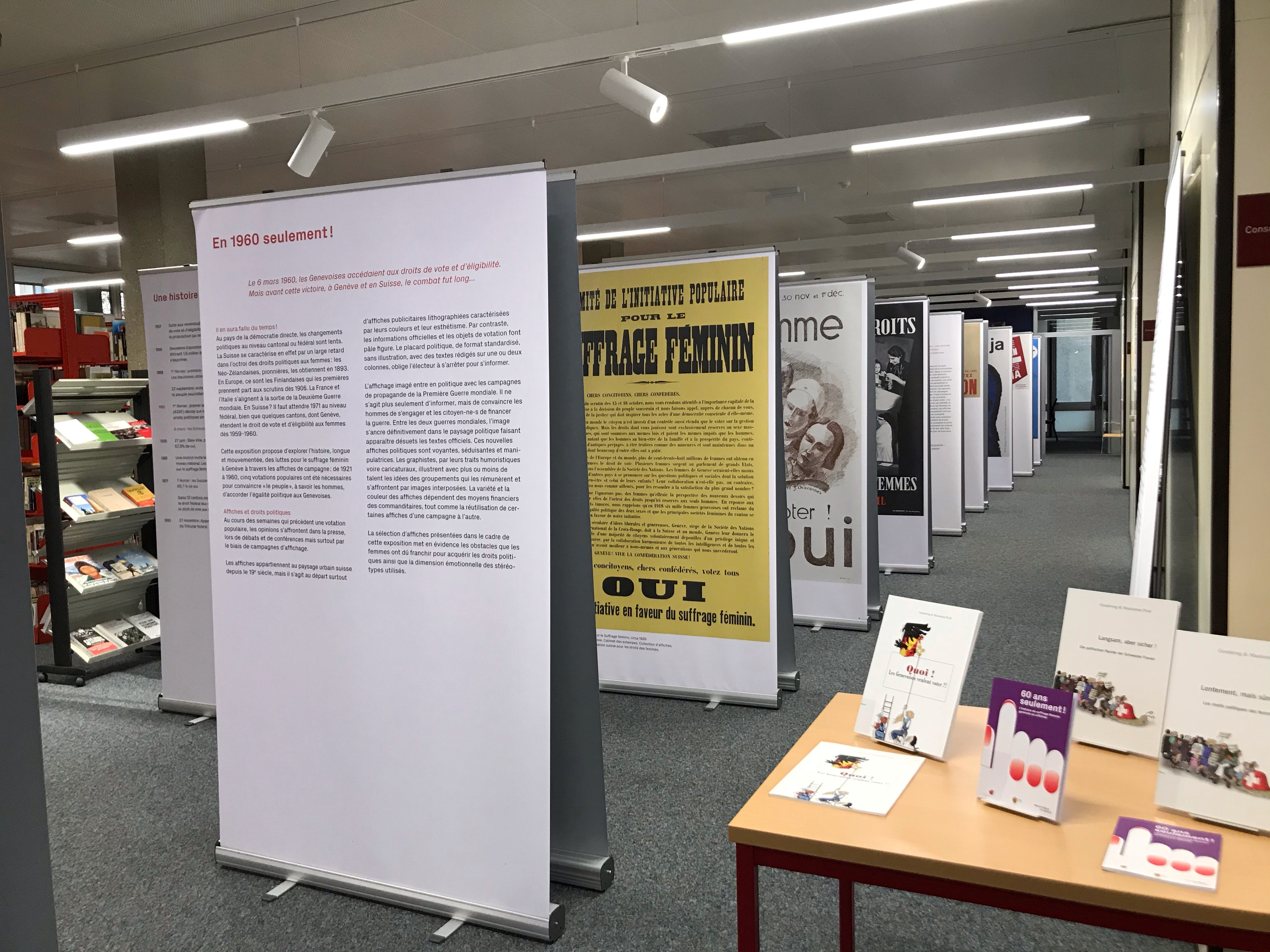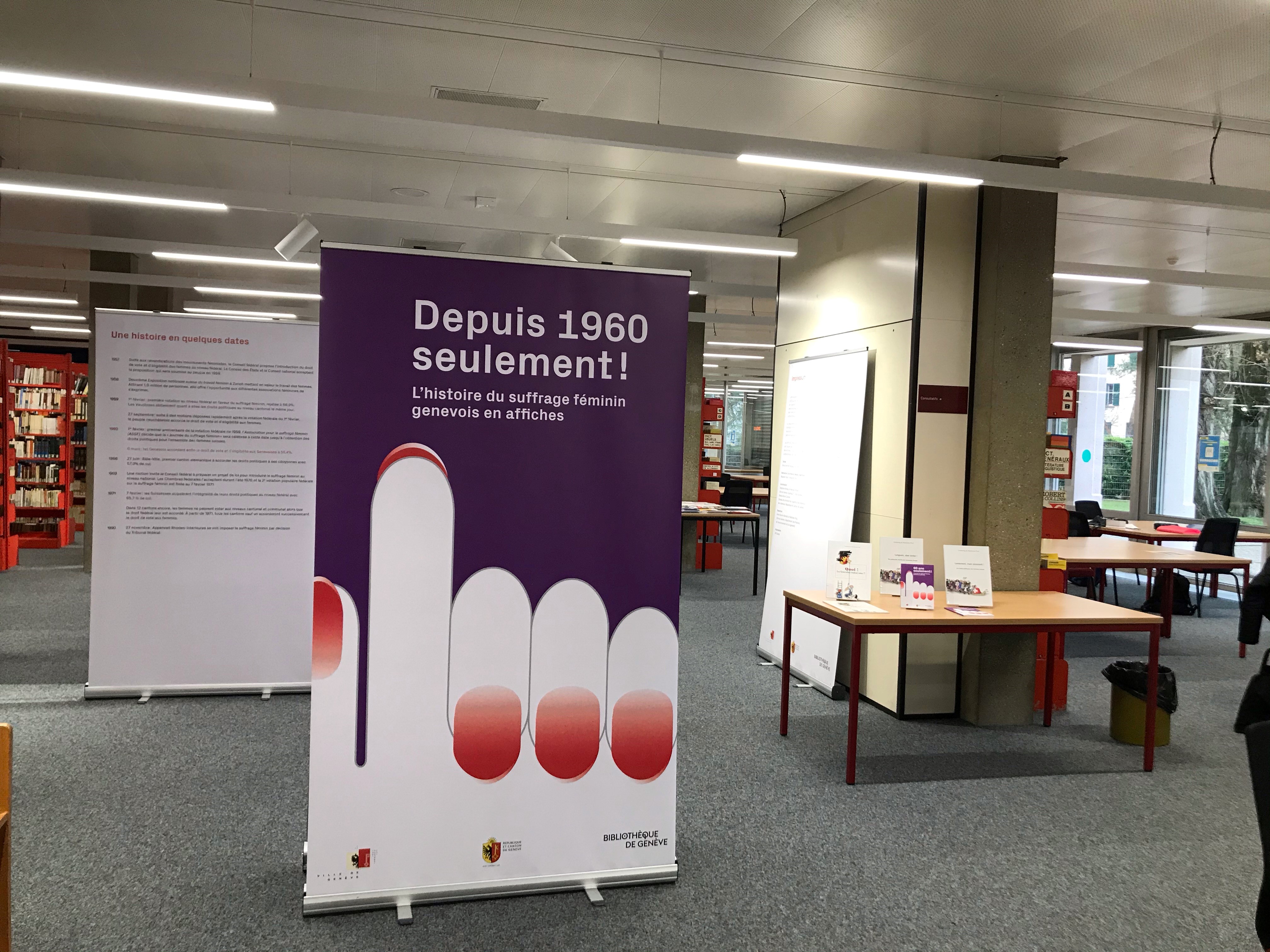 L'exposition "Depuis 1960 seulement! L'histoire du suffrage féminin genevois en affiches" est disponible et peut être réservée et exposée . Pour plus de renseignements.