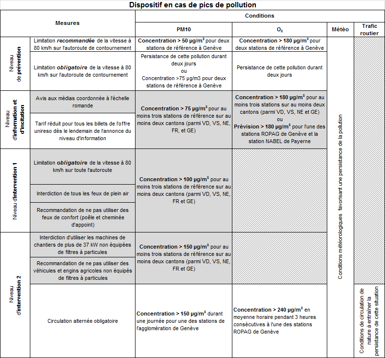 Dispositif genevois en cas de pic de pollution de l'air