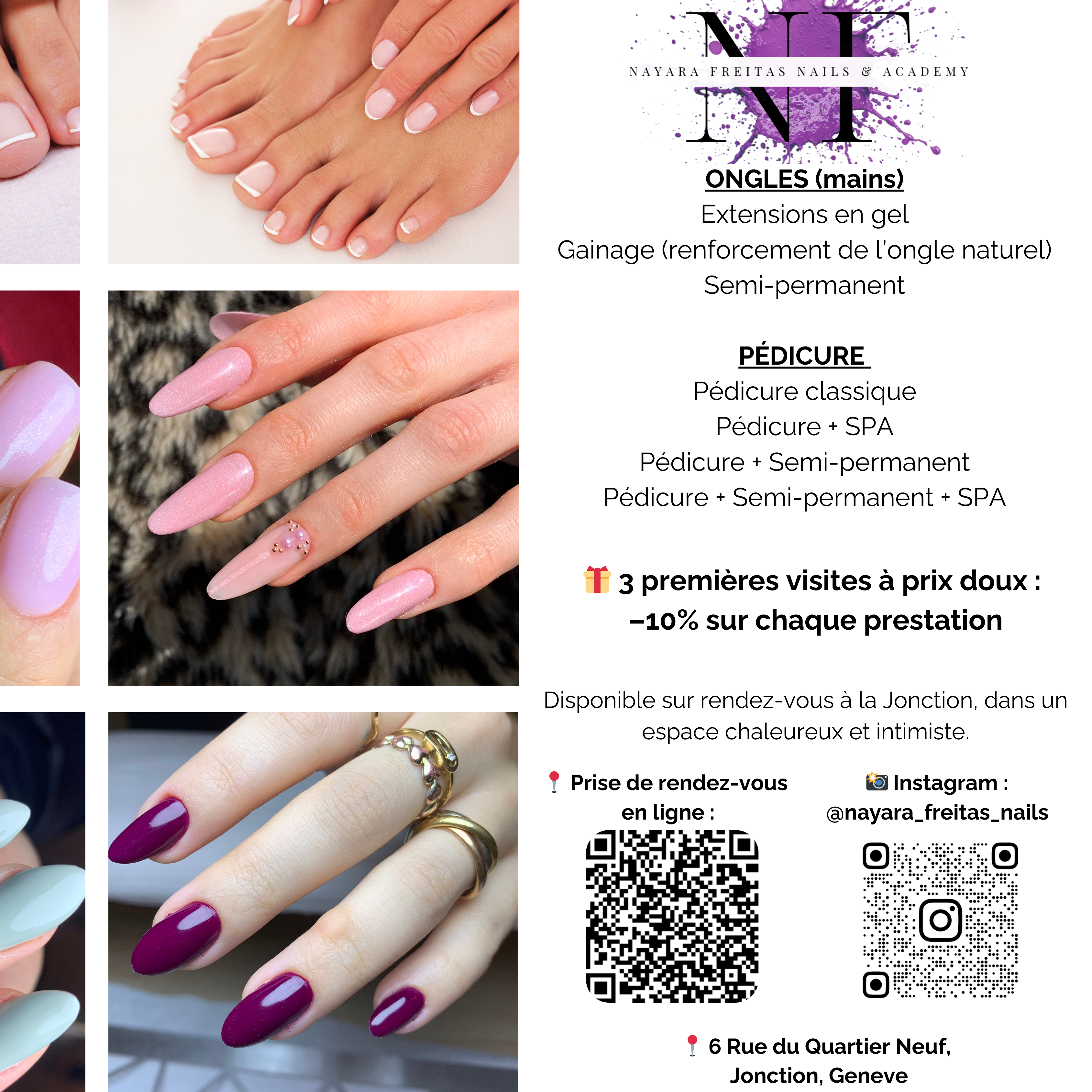 Flyer d'informations sur les offres proposées par Nayara Freitas Nails, dans le cadre de la démarche "Rabais d'entreprise"